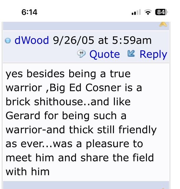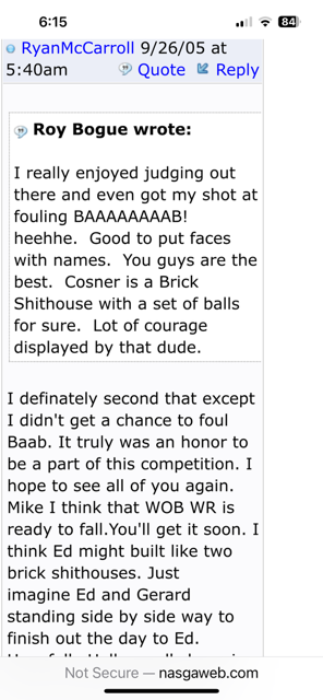 SideNote: I didn't keep throwing because I thought I was some kind of bad ass but you can see in the gallery at the bottom the screenshots of what some of the guys who were judging thought of my performance on the field. I worked really hard after having a shit performace at the 2003 MWC and that performance really stuck with me. Thousands of kilos lifted along with even more reps throwing and doing technique work. I've never been a 'gifted athlete' and I have worked my ass off for every accomplishment I have ever achieved. 'Last picked for recess in 6th grade to elite strength athlete' ... yeah that's me so they were gonna have to carry me off the field for me to leave it. I walked off that day ... okay I limped off on my own terms which unfortunately I didn't get to do years later when I was forced into retirement.