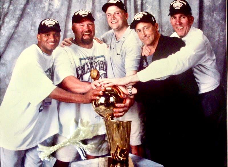 Walking Tim Duncan off the floor during the NBA Finals in 1999