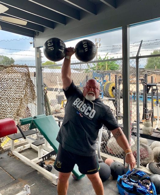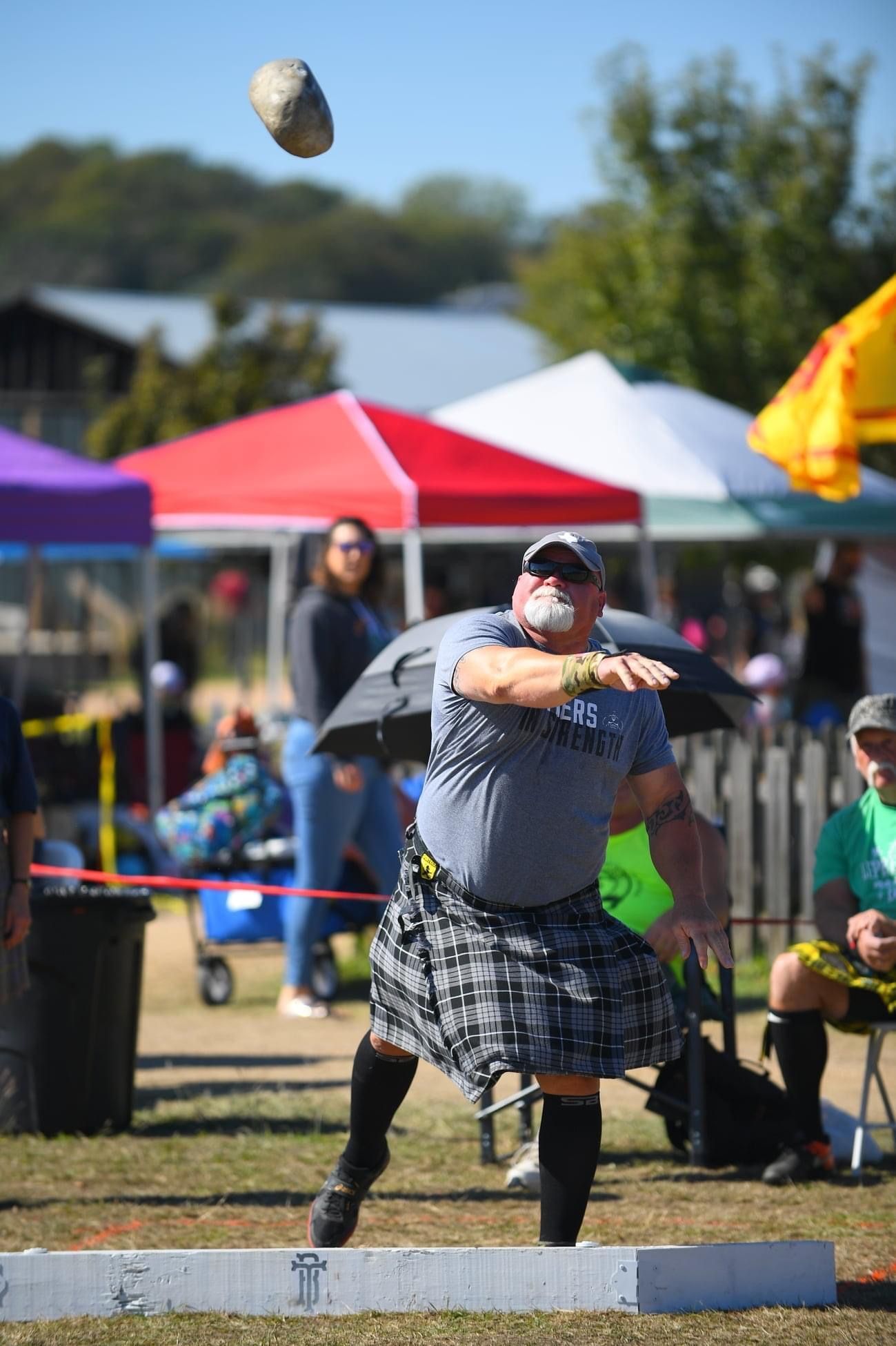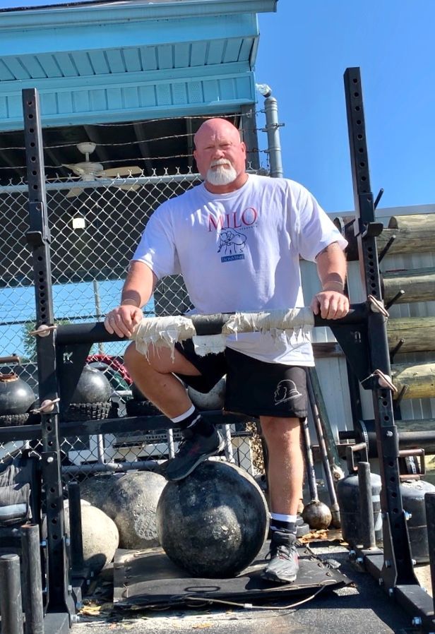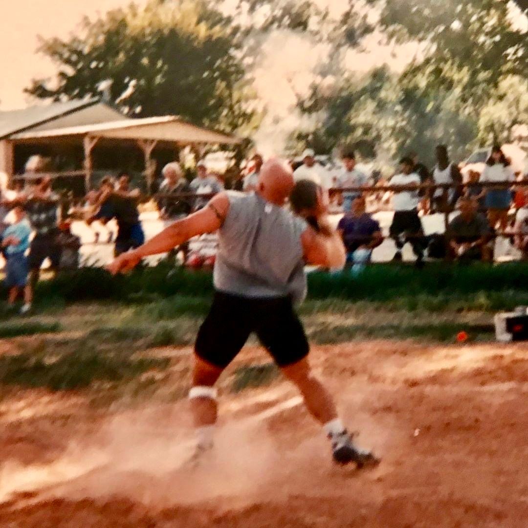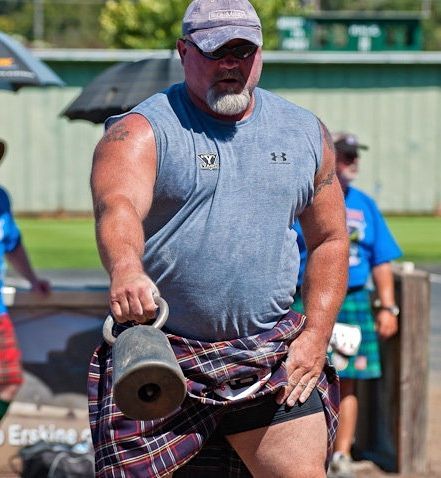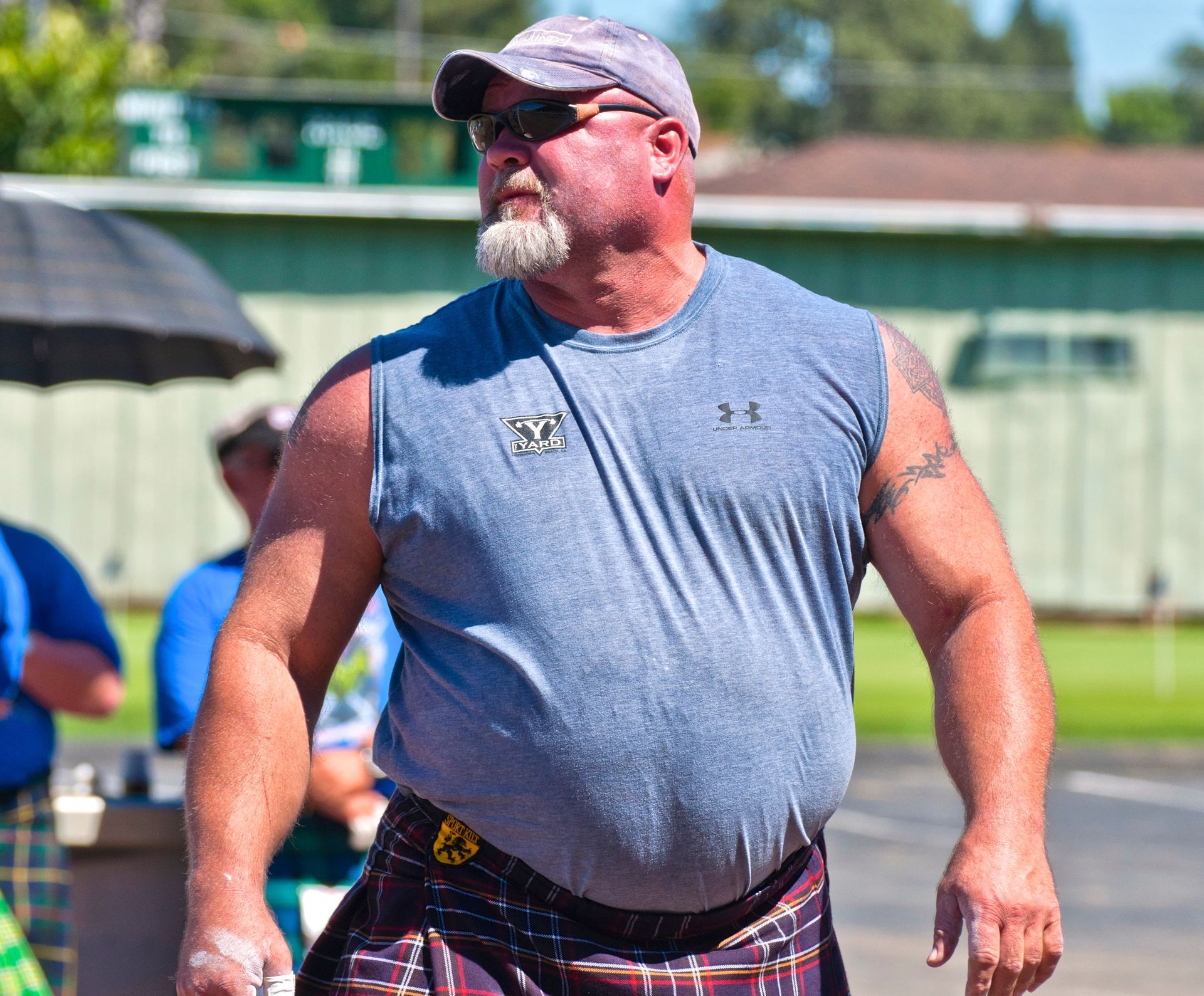 Randy Strossen at the Pleasanton Highland Games Randy is the owner of IronMind